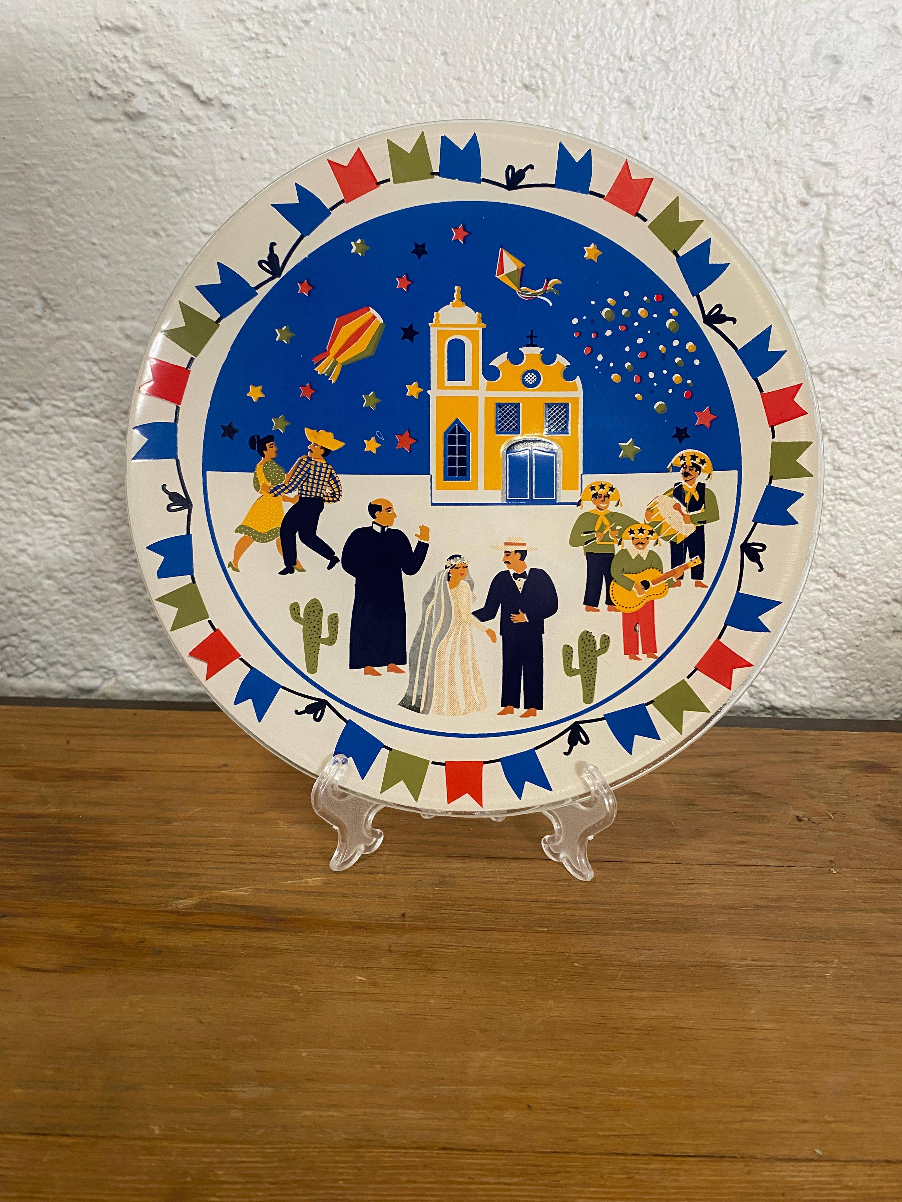Bandeja De Vidro Redonda Junino 16Øcm