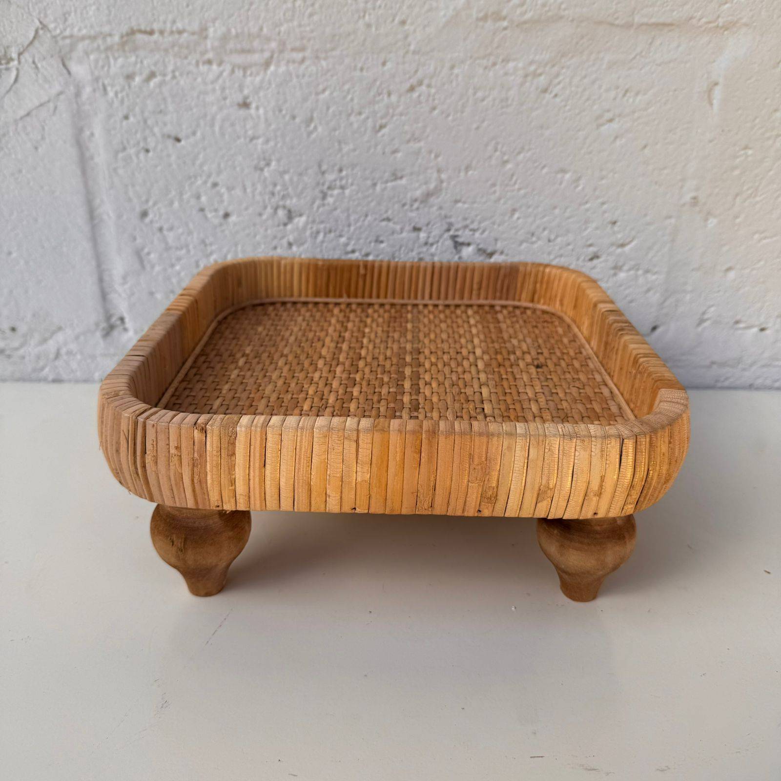 Bandeja De Madeira Quadrada c/ Palha Alta 25 x 25 x 11