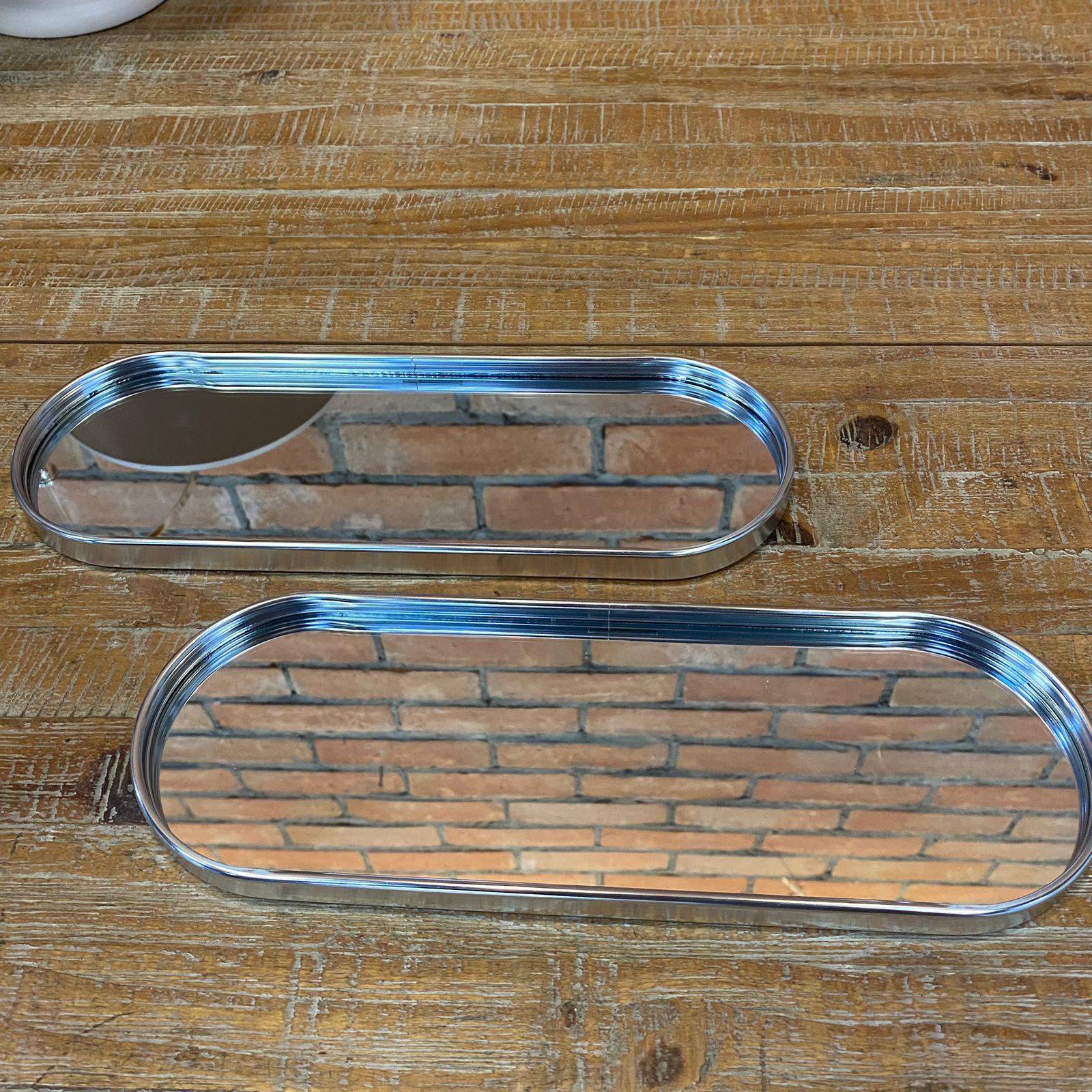Bandeja Oval Prata Espelhada 30x10 cm