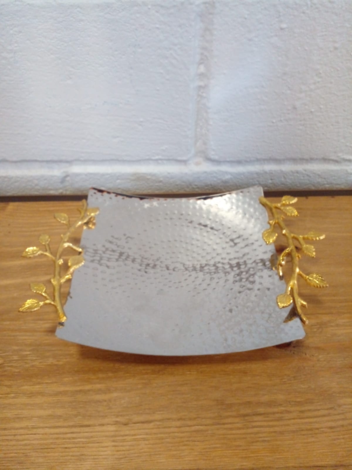 Bandeja Quadrada Prata c/ Folhas Douradas G 26x26 cm