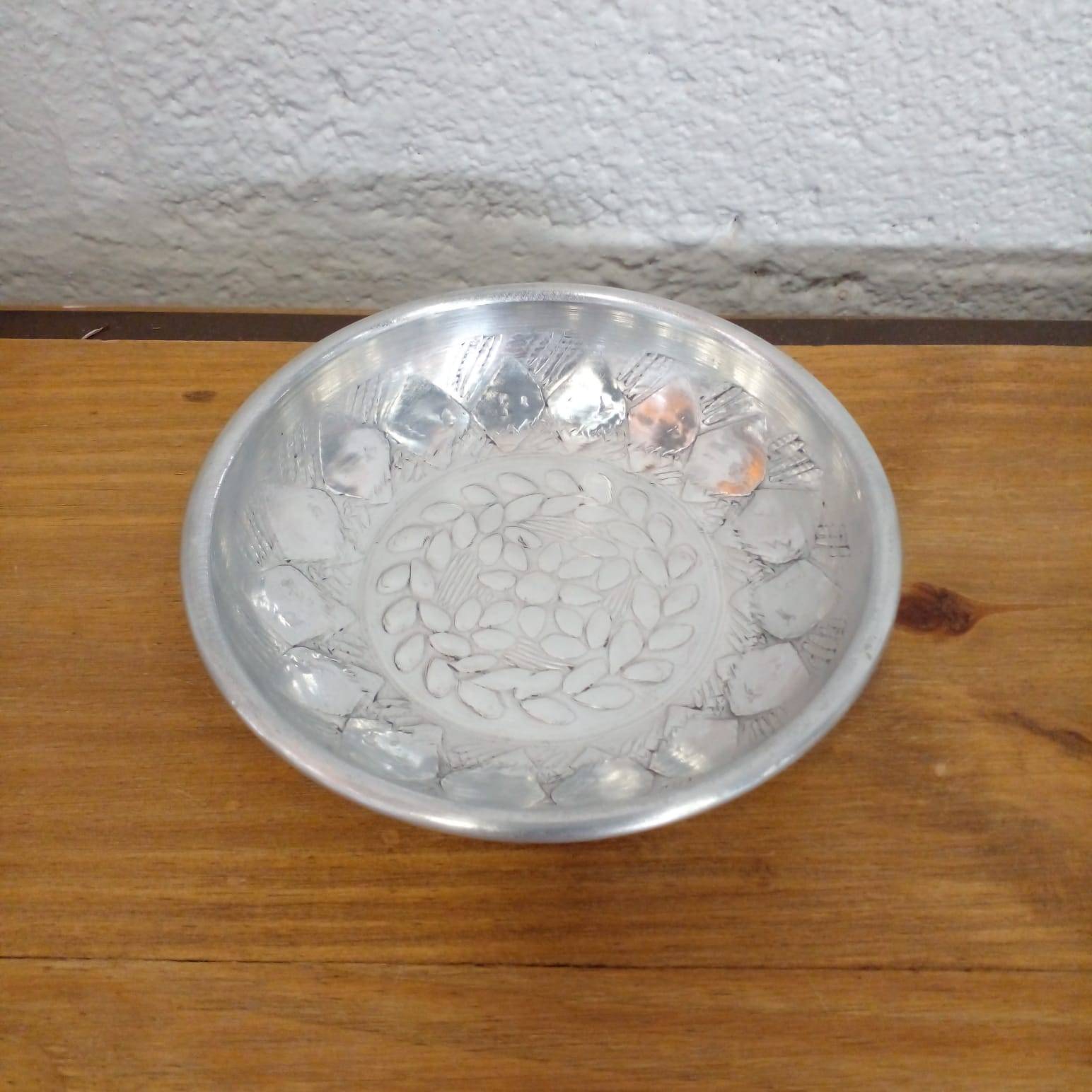 Bandeja de Metal Prata c/ Cogumelos 30 Ø x 22 cm