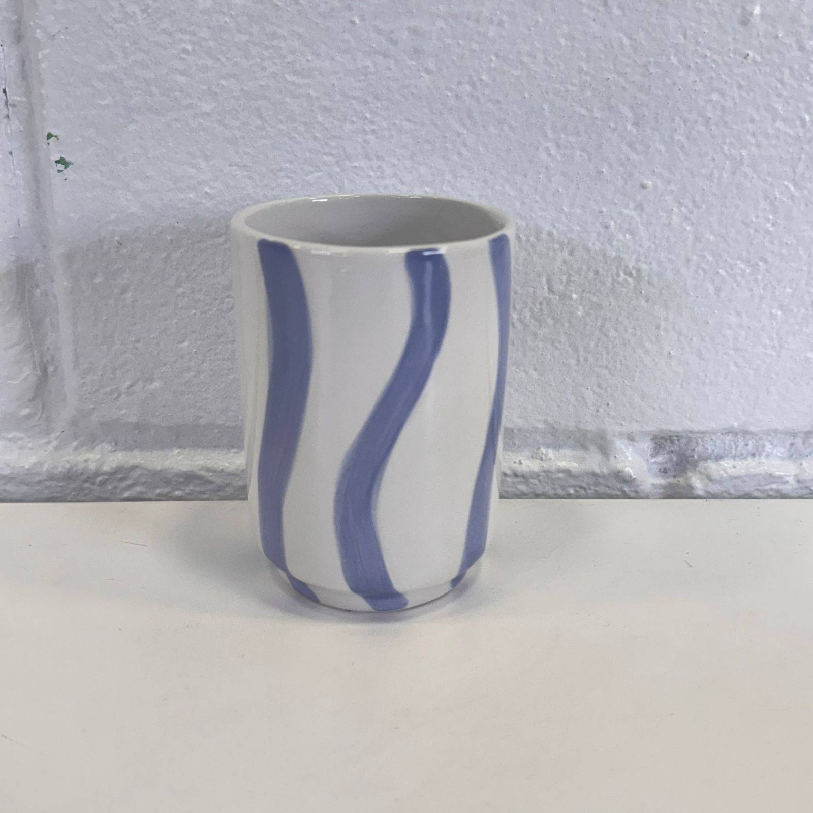 Vaso de Cerâmica Branca c/ Listras Roxa 8 Ø x 12 cm