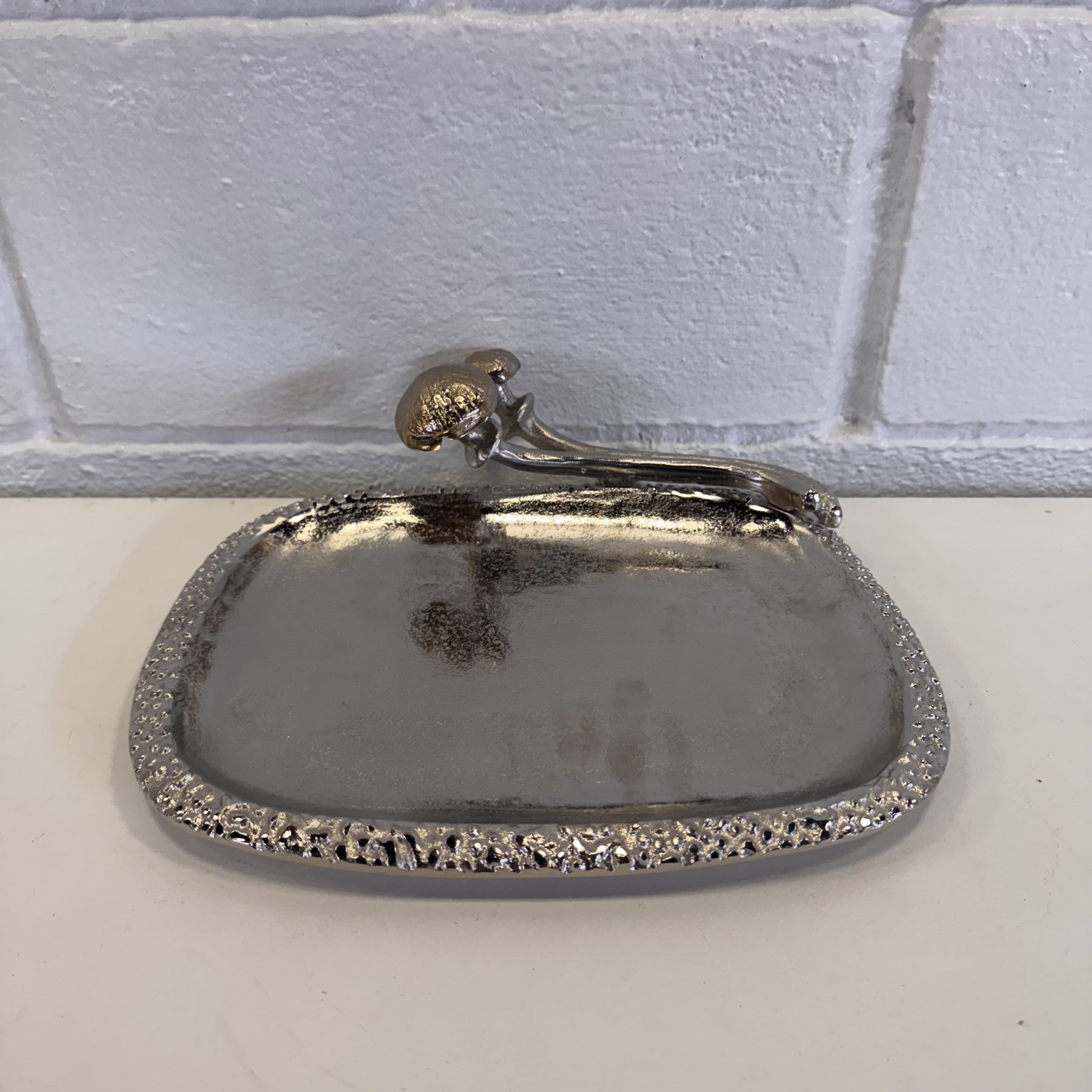 Bandeja de Metal Prata c/ Cogumelos 30 Ø x 22 cm